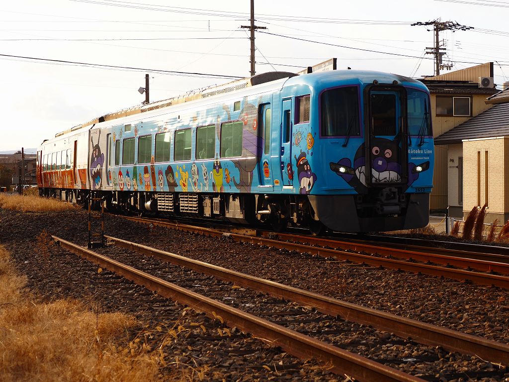 今日もじんわり終わろうとしていましたが、もう一花咲かせて今日を終わろうと屋島駅に向かいます。跨線橋から今度こそアンパンマン列車を撮影しようと試みますが、駅前にバスが停まっており、駅前のしばしの路上駐車も憚られますので場所を移動です。