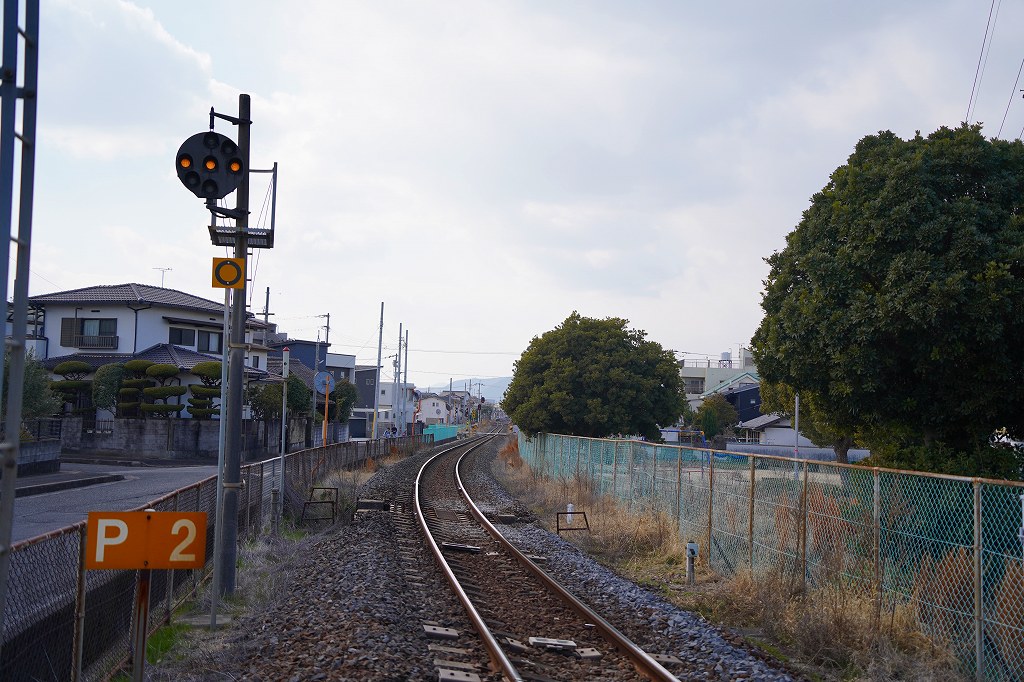 曇天なので今日は後追いにはなるけど、造田駅側に向かって民家裏の第四種踏切から撮影します。ネットで調べると、全国第4種踏切マップというサイトがありました。
