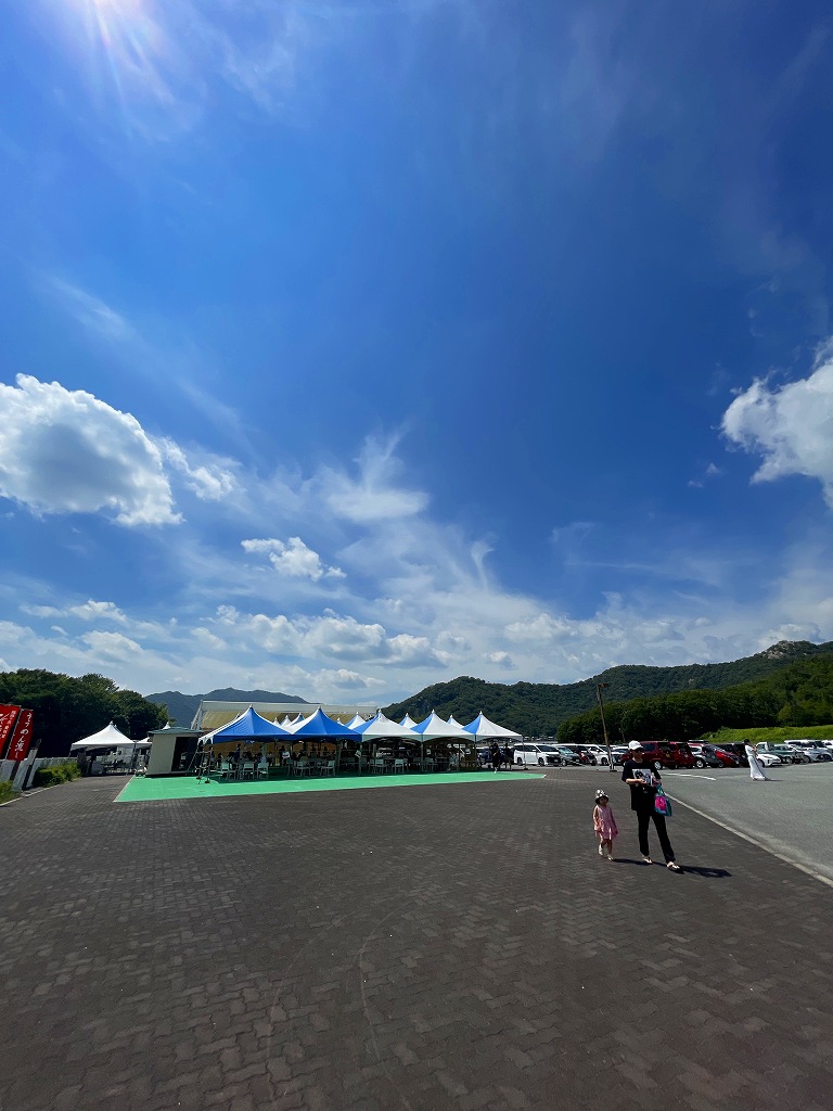 前置きが長くなりましたが車を駐車場に停めます。駐車場にテントを設営し、流しそうめんをやっております。夏休みで退屈をしているであろうキッズを連れた家族連れが長蛇の列をなします。