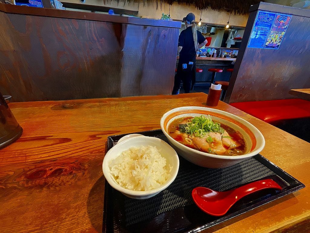 スタミナラーメンセット的なものをオーダーし食らいます。前面には妻がいますがAIにより消えてもらいました。