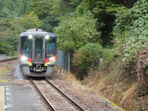 土佐山田を過ぎると、JR四国を代表するハイパワーディーゼル気動車の面目躍如で素晴らしい加速で走ります。そしてアッと言う間に後免駅に到着です。