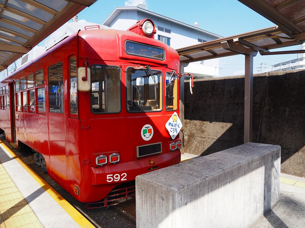どうやらもう出発の時刻らしく、運転手さんも少しピりついています。窓口に行くと別の観光客となにやら地図を広げて、あーだこーだと話をしています、「もうすぐ出るらしいので、フリー切符お願いします」というと切符をくれてまた、話を続けようとするので「今、渡したの5,000円」というと慌ててお釣りをくれました。あたふたしながら電車に乗り込むと、すぐに発車します。そして、すぐに停車。おばあちゃんがゆっくり歩いてきたのを運転手さんが見つけて停車。「おばあちゃん、遅れちゅうきにちょっと急いで」と運転手さん。「足がわるーて」と、よっこらっしょとおばあちゃんが乗って再度出発です。
