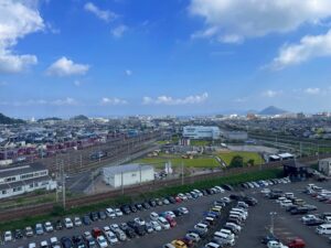この奥に見える病院で人間ドックを受けていますが、ドックの待合から貨物ターミナルと予讃線がキレイに見渡せます。