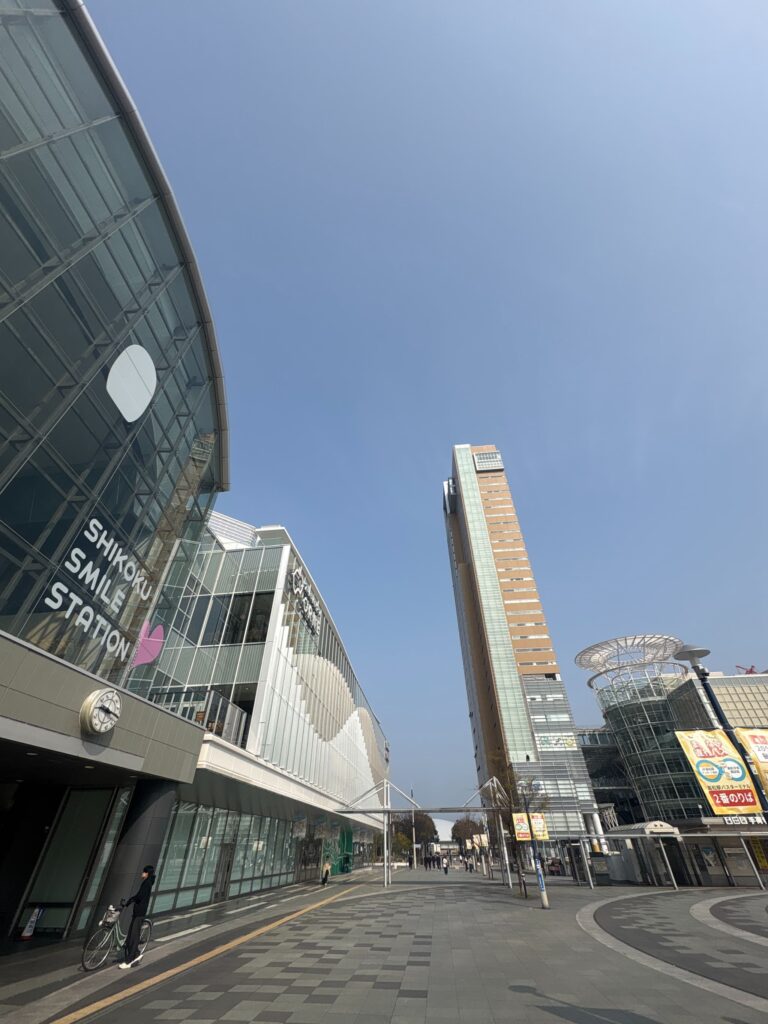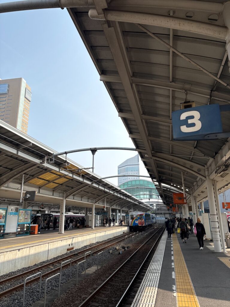 車窓を眺めたり、持ってきた本を読んだりします。本は読みかけと、買ったばかりの本と1冊半を読むくらいの時間で松山市駅に到着です。