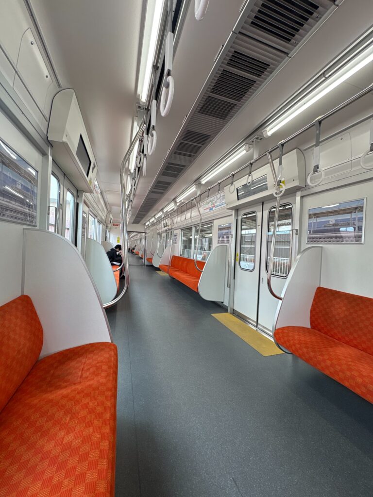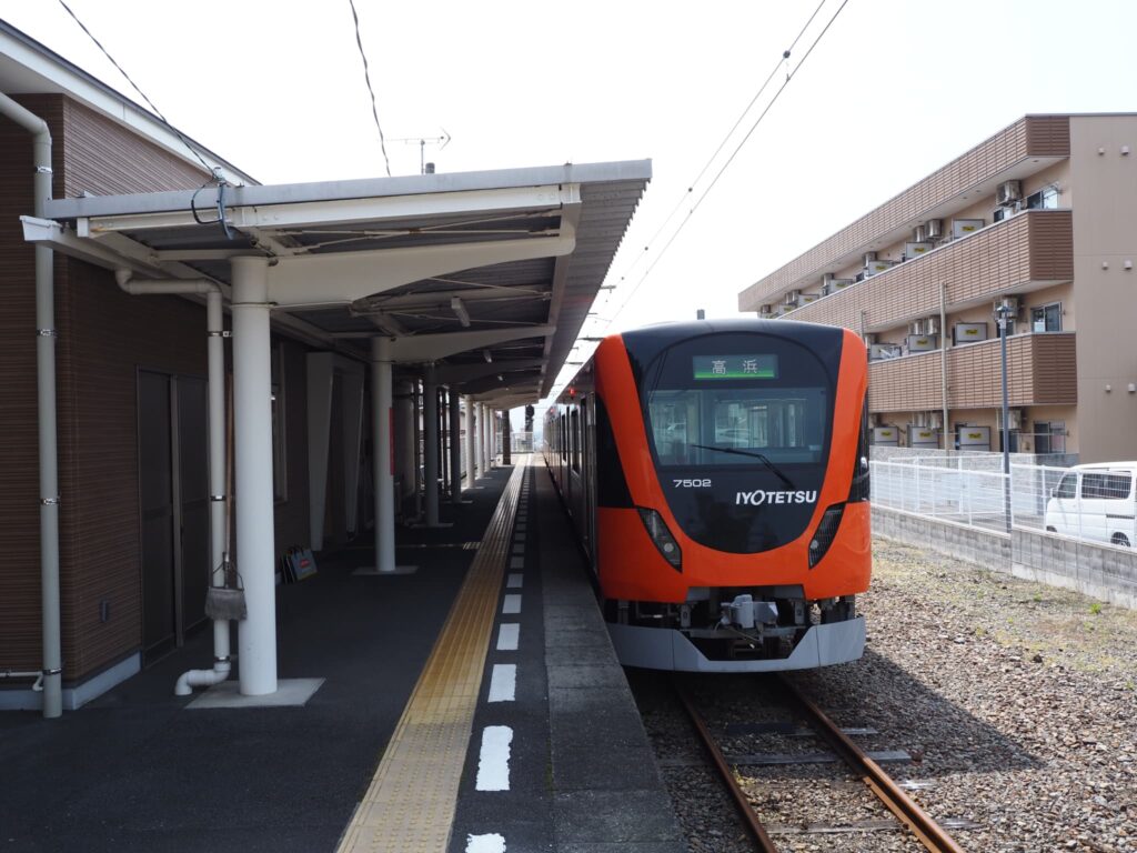 横河原線がすぐに出発するようなので飛び乗ります。新型の7000系車輛ですが、中も広く快適です。ことでんとは違う資本力を感じます。