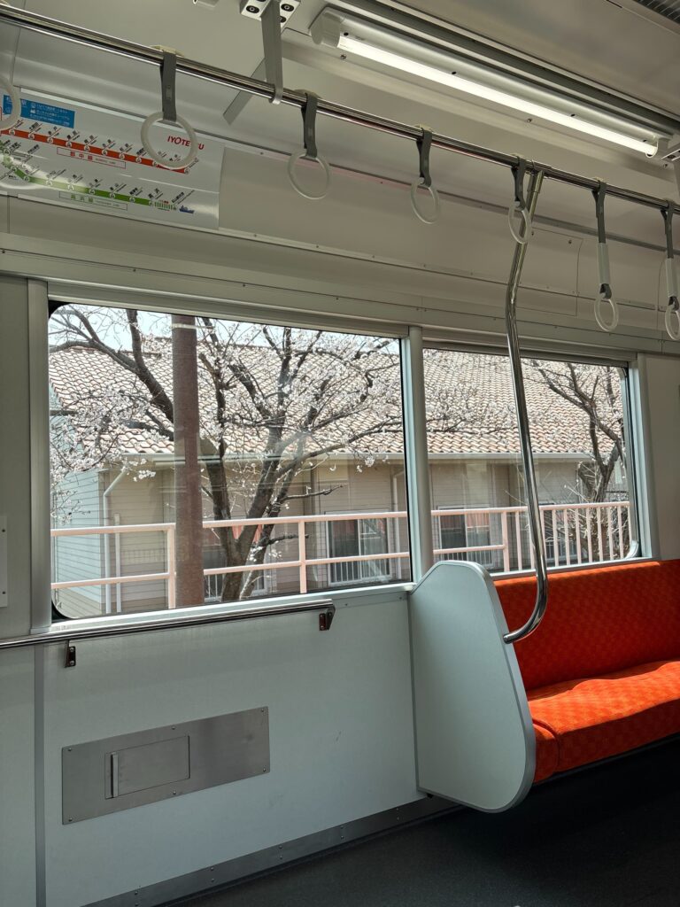 車窓からは桜が見えて、まさに貸切の花見列車です。