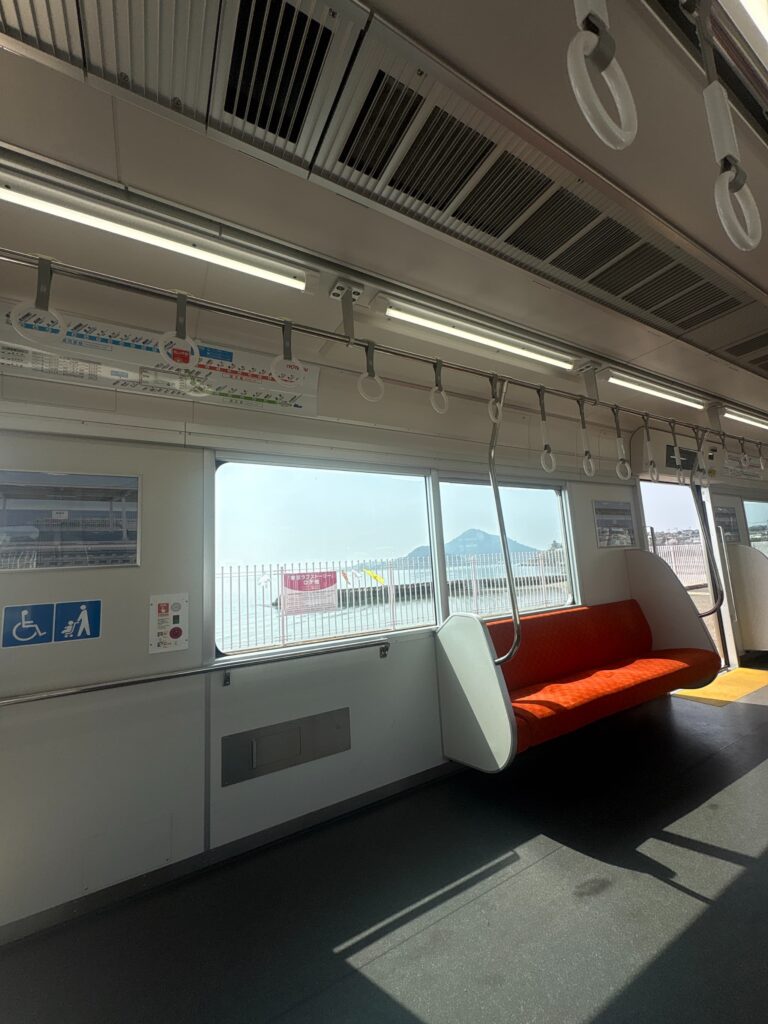土曜日の昼過ぎなので、車内は松山市駅付近以外はガラガラです。清潔な車輛で誠に気分が良いです。