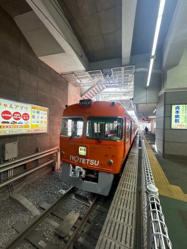 一駅で松山駅に到着です。伊予鉄で30分弱で来たところをあっという間に折り返します。