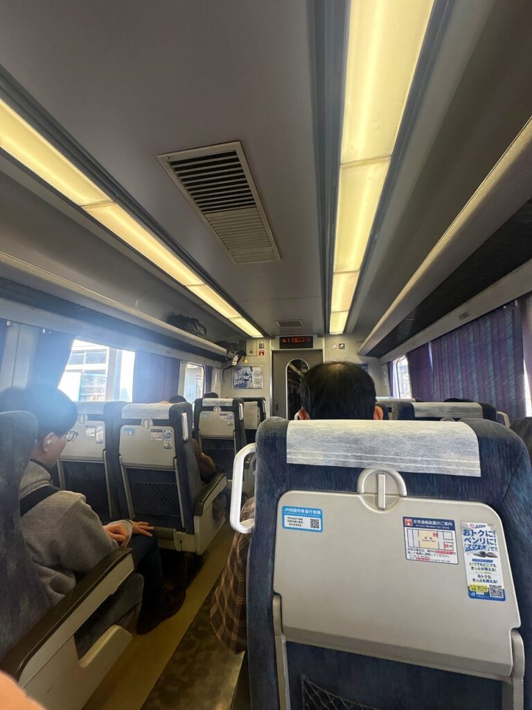 車内は満席です。マラソンぽい服を着た外国人がいたので、何かイベントでもあったのでしょうか。
