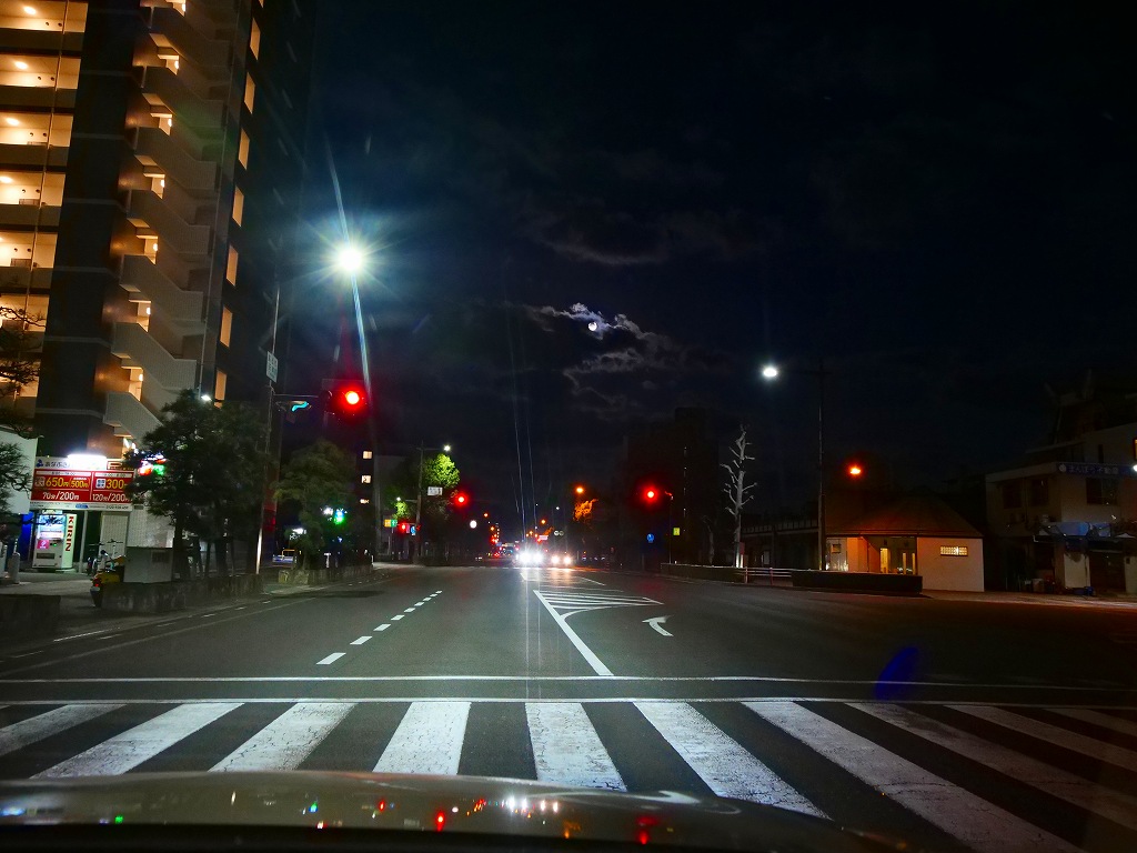 英名高校前の交差点で信号待ち中に撮影します。まだまだ夜です。そして、寒い。