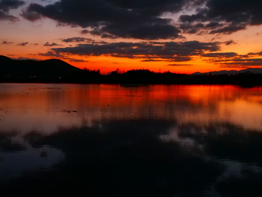木で写っていませんが、三脚を立てたぼっちおじさんが春日川東岸を牛耳ります。(レンタル自転車?で来ている様子です)私はいつもとは違うところいうことで、高松大学付近から望遠で撮影します。
