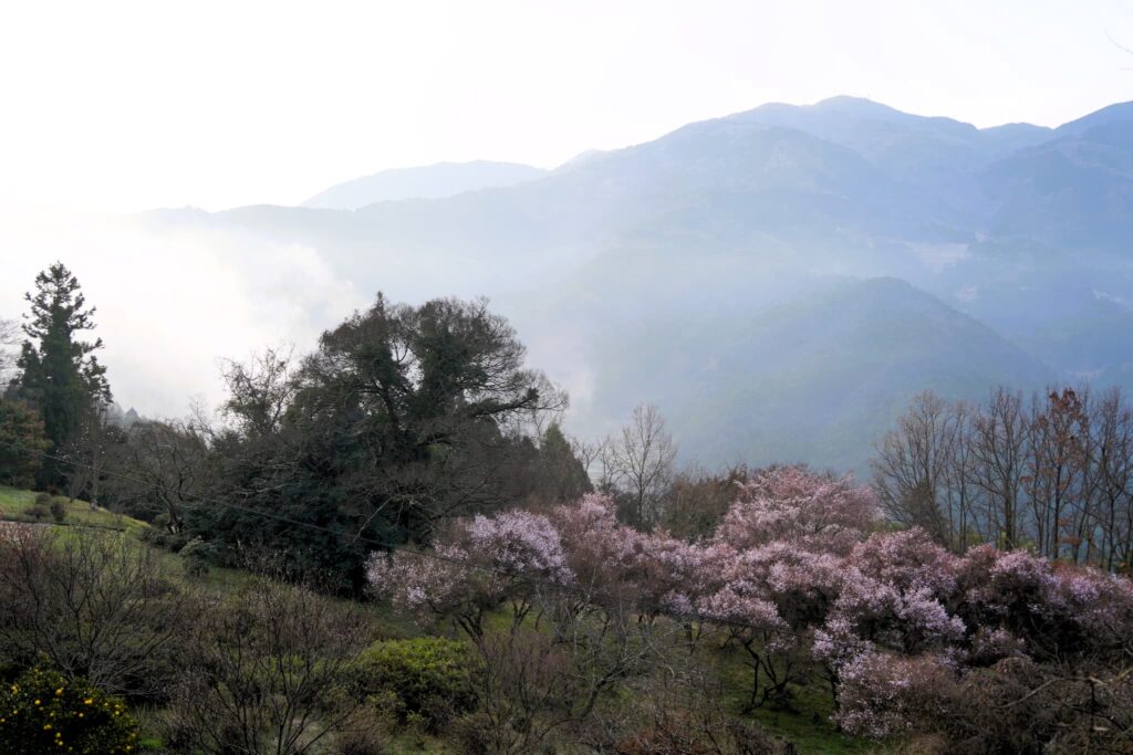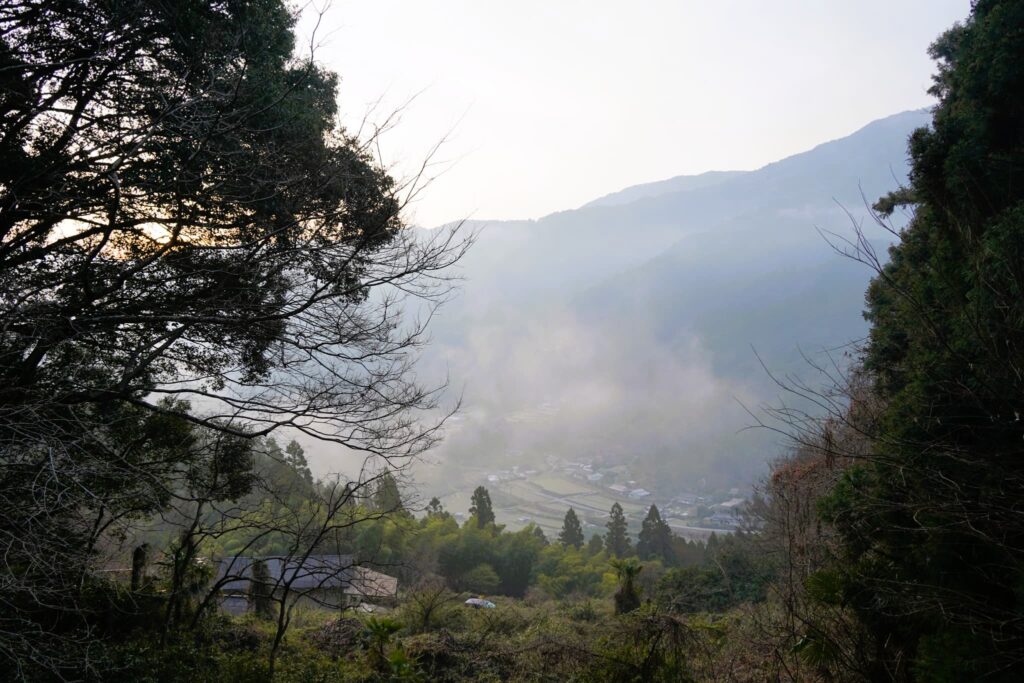 川霧が雲のように流れています。
