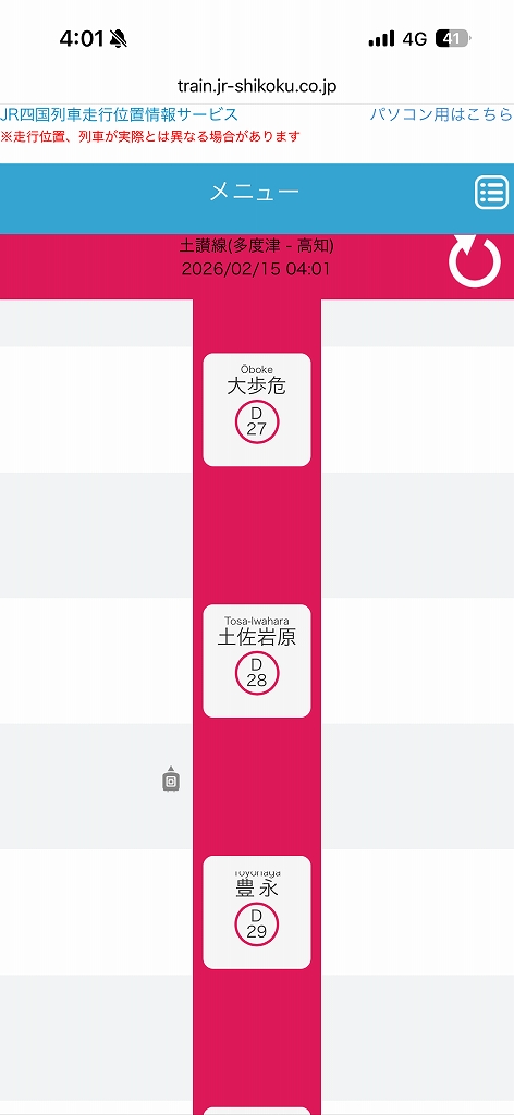 耳を澄ませば吉野川沿いの下の方で列車の音がしています。列車の位置情報を見ると回送列車が通過したようです。高徳線でも毎朝5時前後に回送列車が走っていますので、いつもの車両の送り込みなのでしょう。おそらく池田方面から土佐山田方面に行く普通列車ではないかと勝手に想像します。