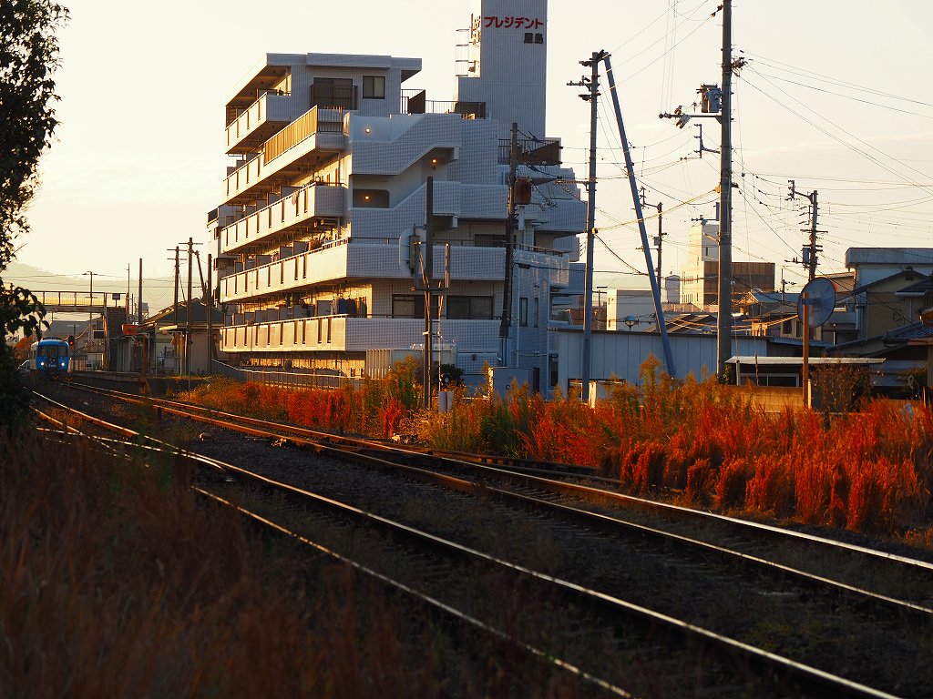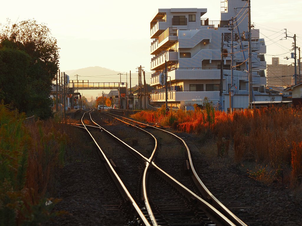 線路沿いをカメラをぶら下げて歩くと、いつもの景色が違って見えます。いい、日曜日の夕方だった。