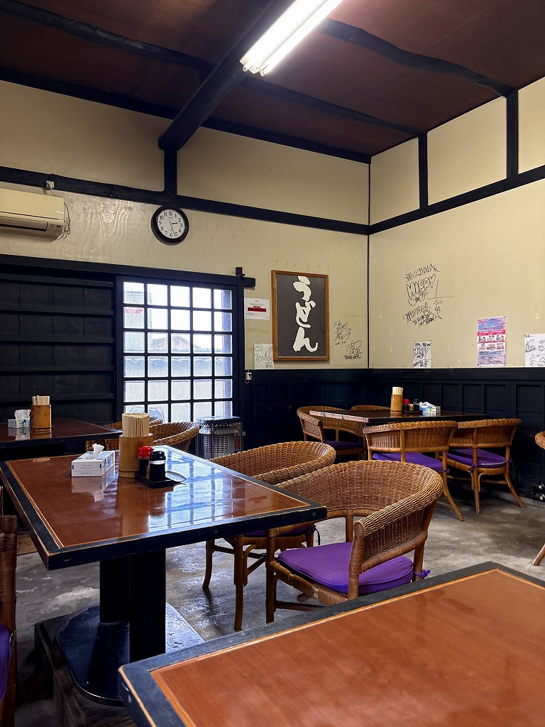 昔ながらの一般店といういでたちです。なかでは、うどんが出るまでにとお客さんが座敷にあがっておでんを食べています。