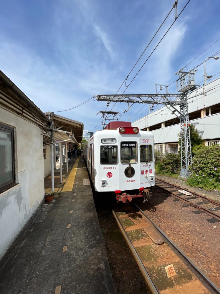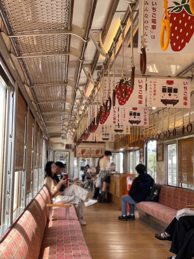 いちご電車に乗り込みます。