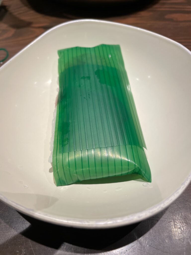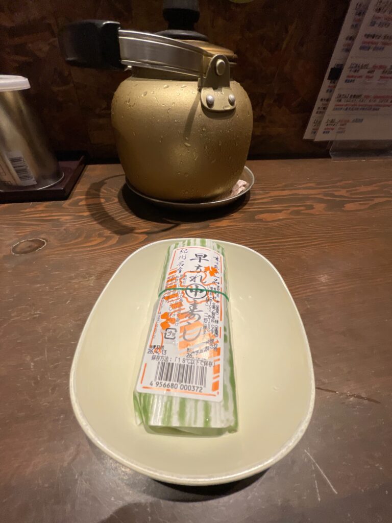 巨大バランに包まれています。昔は笹の葉だったのでしょうか?