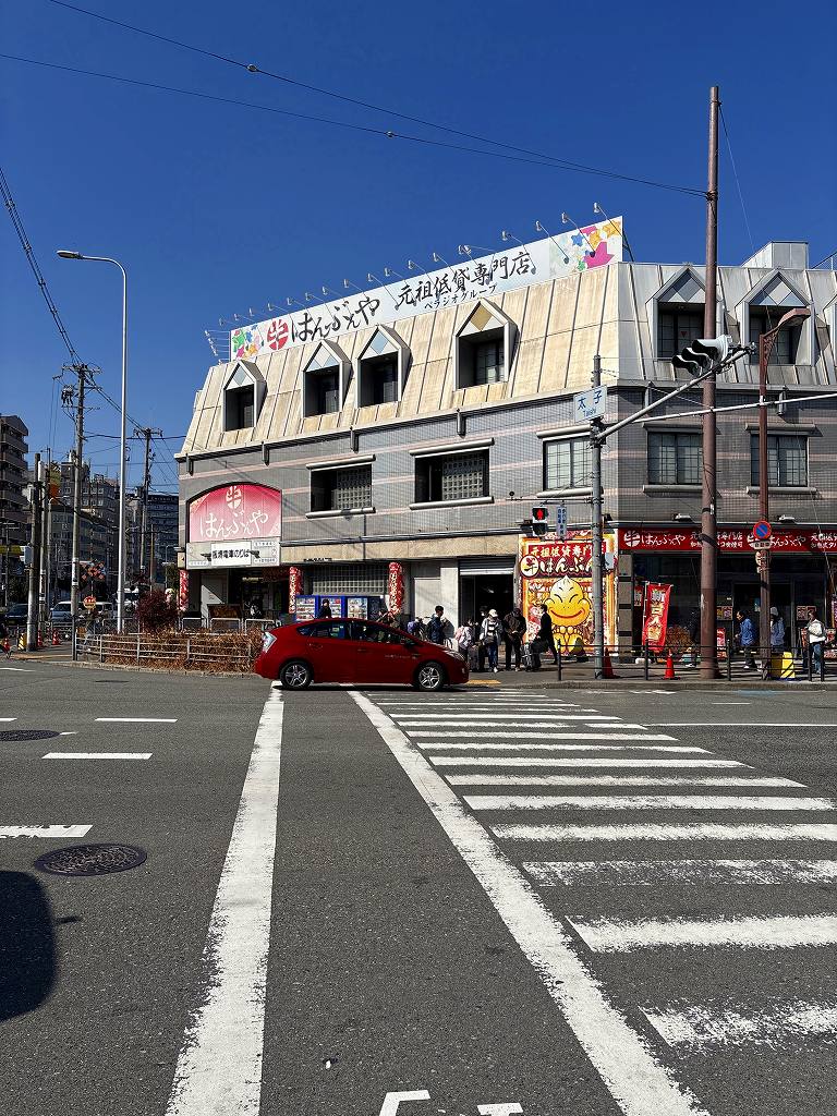 しばらくすると路面電車がやってきました。これは阪堺電車の線路でした。南海電車の浜寺公園駅から乗換えできるなあとじんわり見ていた路線です。さすが大都会、列車の層が厚い。