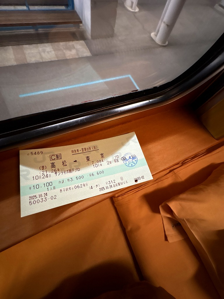 翌日は朝からソワソワします。都合よくこの日は、定時退社の日です。一刻も早く家に帰り、風呂に入り旅行の準備をしなければなりません。仕事が終わると脱兎のごとく職場を離脱しコトデンに乗り込みます。風呂に入りゆっくりしていると、ゆっくりし過ぎて時間ギリギリとなります。慌てて高松駅に向かいます。