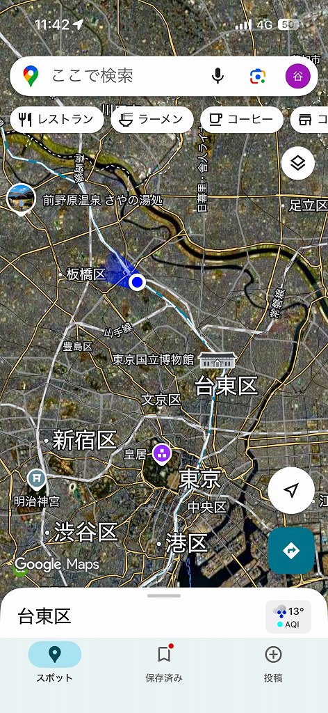 心配になって位置を確認してみると北に向かっているので、間違いなかったようです。