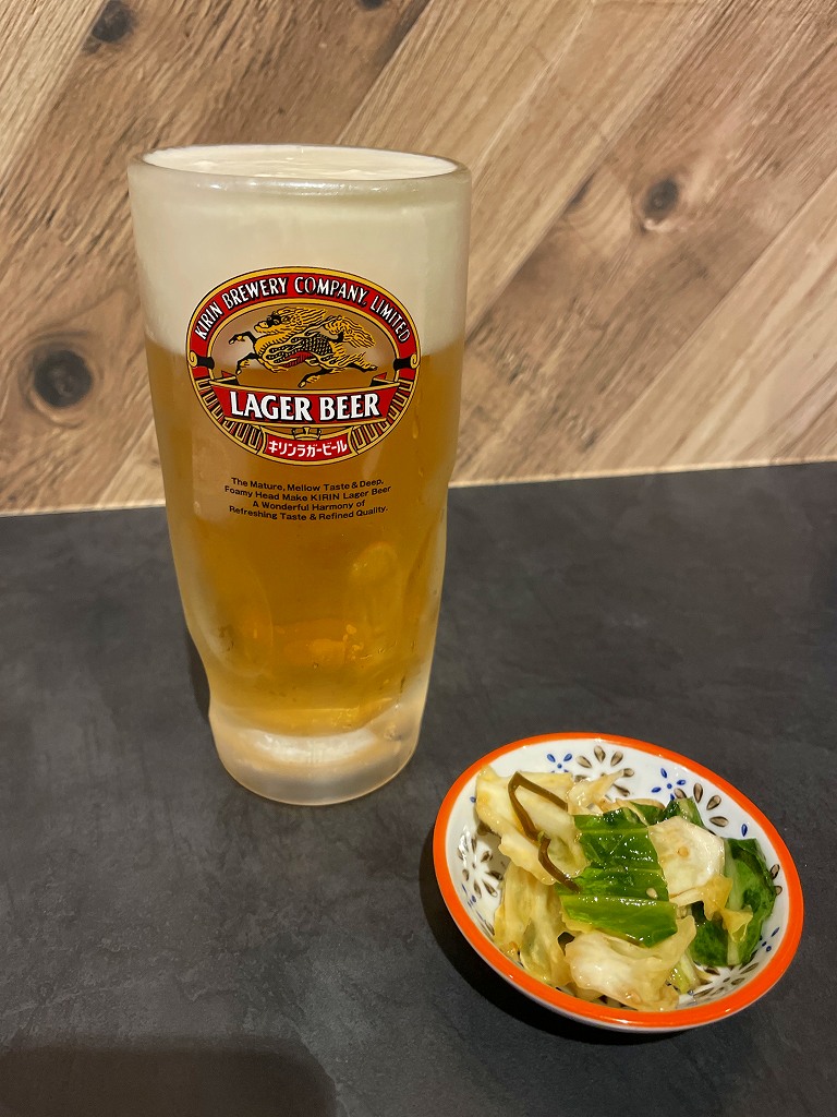 まずはビールをオーダーします。これは2分くらいで飲んじまいました。