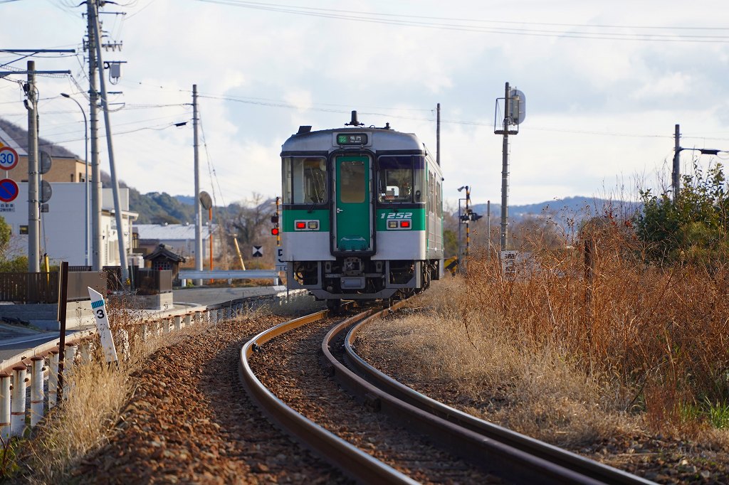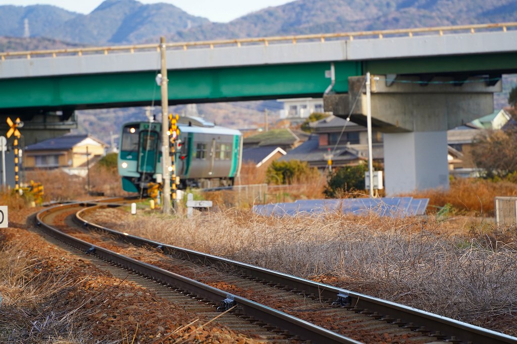 カメラを操作している間に列車が迫ってきて残念な感じです。これから特急が来るので特急を撮影しようと駅前での駐車場を探しますが停められそうなところが無く断念。少し高松寄りの橋梁もいい感じですが、そこも駐車できそうな場所がなく断念です。やはり周辺事情と、列車の時刻くらいは事前に決めていないとグダグダです。