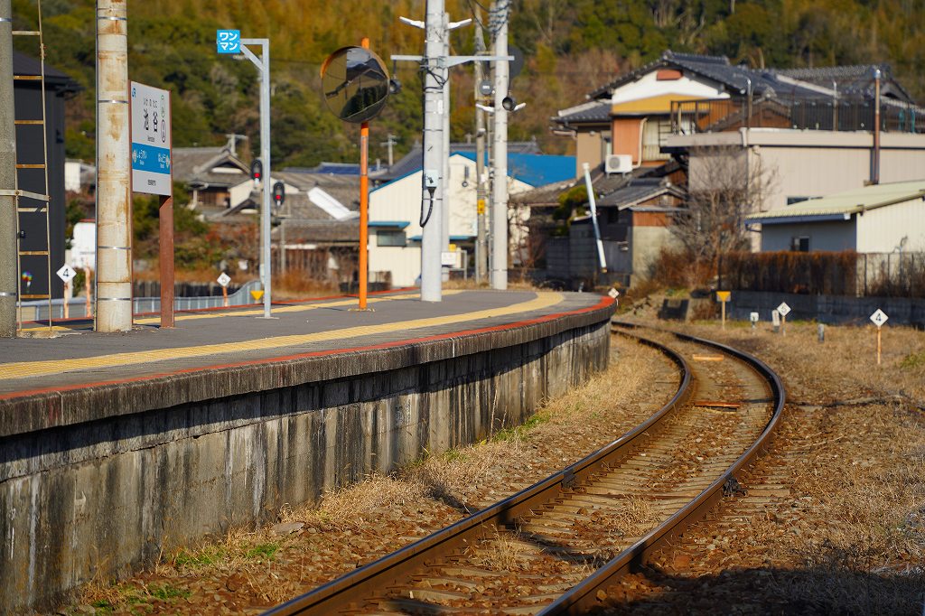 鳴門駅の前を通り、鳴門線沿いを走ります。なにかいい感じの線路だなあ、と思って線路を辿っていくと池谷駅に辿り着きました。池谷駅は結構来たことがあるので、勝瑞駅付近で写真が撮れないものかと行ってみます。
