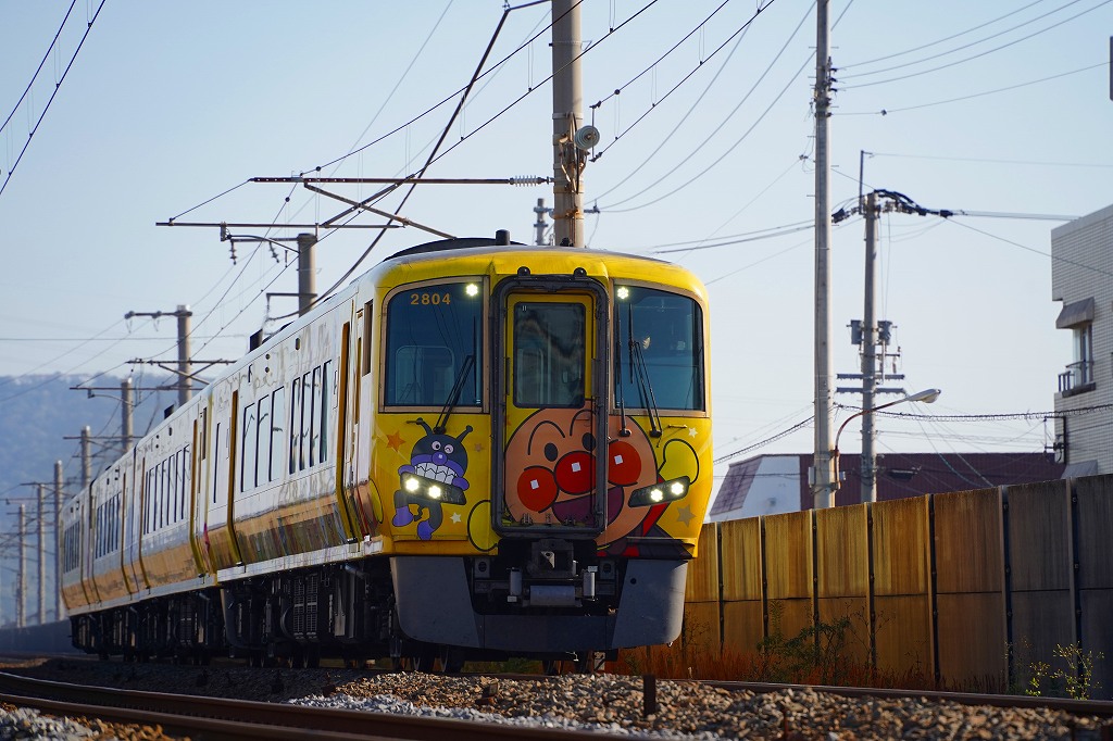 アンパンマンの南風がやってきます。架線があるところを走るハイパワーディーゼル特急です。優しいカラーリングとは違って、暴力的な速さで走り抜けます。