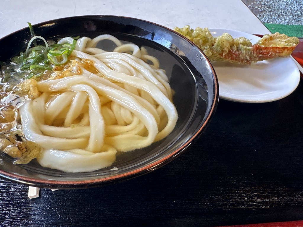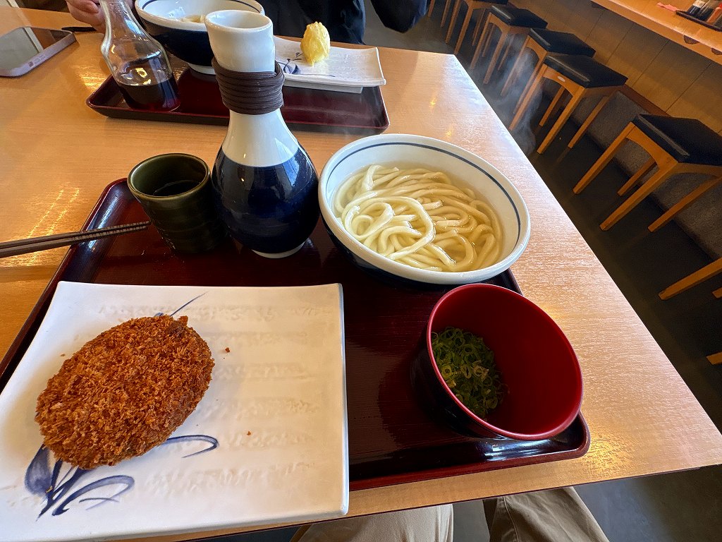 釜揚げうどんを食べます。通はこの食べ方と言いますが、せっかちなので熱々で食べられないのでほとんど食べたことがありません。2杯目なので、私のせっかち加減も緩和されて味わいながら食べます。